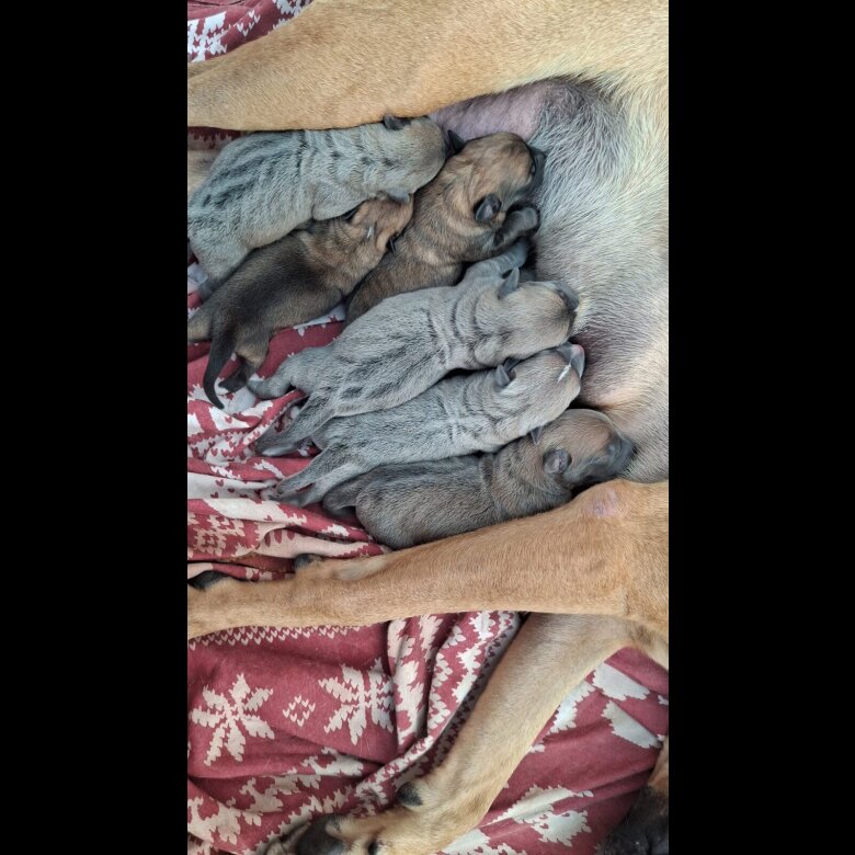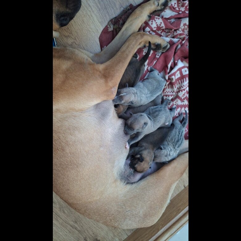 5 beautiful Belgian malinois/ border collie male puppies and 2 beautiful belgian malinois/ border collie girl puppy for sale. They are now 5 weeks old. Girl is brown with a white chest One boy is brown with black ears and a black nose. The other boys are grey with white on their head or chest or both. They would make a lovely addition to a family as they are always around children and be handled by them. They would also make wonderful working dogs too. Also would be good around other pets too. They are all growing well and have developed their own characters. All loving and playfully. They will be ready from the 25th of August 2025 All dogs can be seen on request. More photos can be sent to you if asked. Of individual pups. Any questions dont hesitate to ask by phone call message or on here. The pups will leave with some food to go home with.