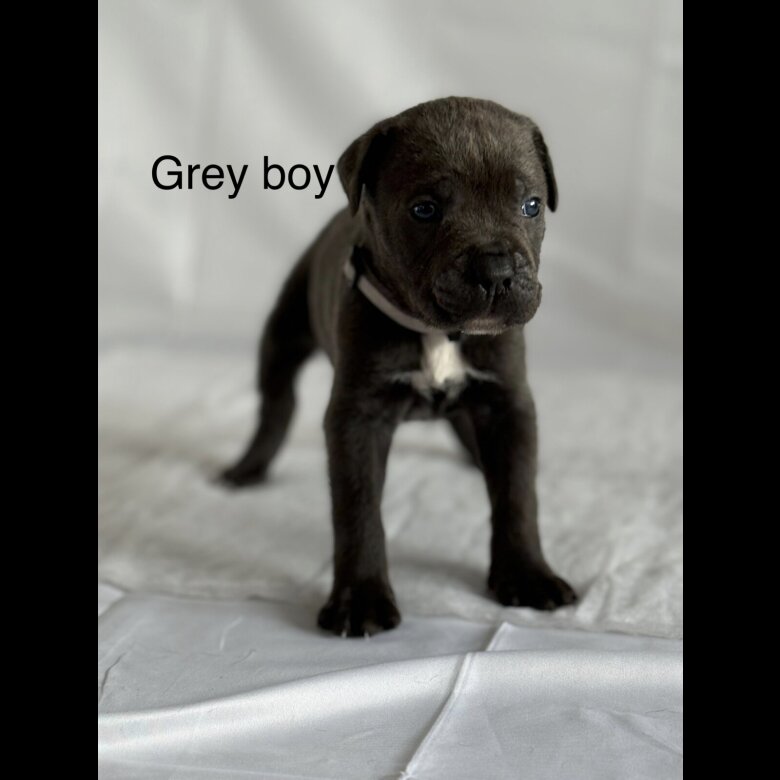• Mum: Full-bred Cane Corso with champion bloodlines and full pedigree weighing nearly 60kg. She is our much-loved family pet and will be present at all puppy visits.