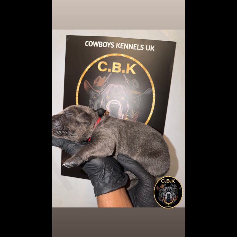 Exceptional Cane Corso Litter – Dior x Casper 🔥 We are proud to present a stunning litter of purebred Cane Corso puppies, bred for structure, temperament, and working ability. First Generation of the Genesis Bloodline! 🐾 Sire – Casper Purebred blue Cane Corso Impressive presence and size Strong working background Exceptional guardian instincts 🐾 Dam – Dior Purebred black brindle Cane Corso Trained under CBK as an ESA (Emotional Support Animal) Proven, well-balanced temperament From strong bloodlines her dam is a champion blue 🧬 Bloodlines & Quality Both parents come from champion bloodlines ICCF Registered Puppies bred with focus on health, structure, and temperament Ideal for working, protection, or experienced family homes 🐶 The Puppies Raised in a hands-on environment Will be well socialised Strong, healthy, and correct in structure Feeding well and developing as expected 📋 What Puppies Will Leave With? Microchipped (legal requirement) Wormed to date Health checked Starter pack 💰 Payment plans available (terms discussed privately) 🏡 HomesThese are powerful, intelligent dogs serious enquiries only. We are looking for committed homes that understand the Cane Corso breed. 📩 Message for more information, photos, or to reserve