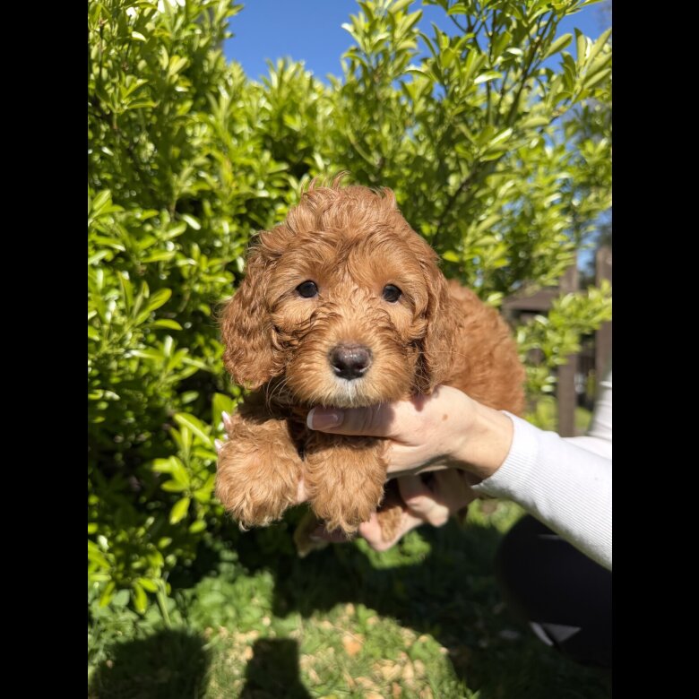 We have 1 male pup available, all pups are a stunning ruby red colour with low/non-shedding coats. The miniature F1b Cavapoo is a cross between a first-generation Cavapoo and a miniature poodle, making them known for their lovely temperament, intelligence, and low-shedding coats. Dad, Reggie, is a DNA-tested red miniature poodle, imported from Russia to introduce fresh bloodlines into what can often be an over-condensed market. Our puppies are born and raised in our family home with lots of love and interaction from both myself and my family. As part of our early socialisation programme, the puppies will undergo: * Early Neurological Stimulation (ENS) * Early scent and sound introduction * Familiarisation with everyday household noises such as the hoover, washing machine, TV, etc. * Exposure to children and other animals, including cats This helps ensure the puppies grow into confident, well-adjusted companions. Puppies will be ready for their forever homes from early may (this can be discussed when reserving). Each puppy will come with: * A puppy pack * Microchipping * Vaccination documents * DNA testing documents for both parents *Health check Please note: * As responsible breeders, we reserve the right to refuse or decline a sale if we feel a home is not suitable. Our priority is always the safety and welfare of the puppies. * A non-refundable deposit of £500 is required to secure your puppy of choice. * If a deposit has been paid but the purchase is not completed, we reserve the right to offer the puppy to another buyer. If you’re interested or would like more information, feel free to get in touch — we’re happy to answer any questions! WhatsApp
