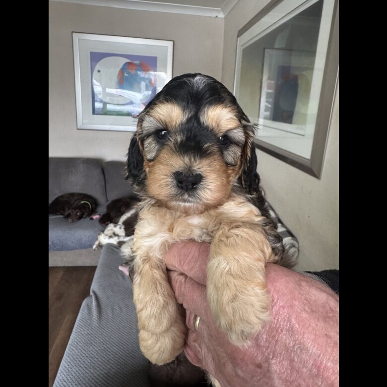 Beautiful litter of Cockapoo Puppies, both Boys and Girls available, Pups have been born and raised within the family home also both parents live within the family home. Both parents have been extensively DNA tested which means pups will not suffer with any hereditary diseases, Before Puppies leave they are fully vet checked, microchipped and have the 1st part of their vaccination course, they are also fully flead and wormed up to the date they leave, they also leave us with a comprehensive puppy pack which includes Diet sheets, Fleaing and Worming schedule and some helpful tips that will help pup settle into their new life. We also send them home with a blanket with Mums scent on, and a few little toys and chews to help with the transition to their new home.