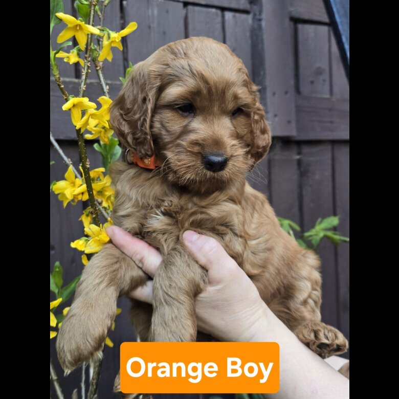 Our loving dog Nela (Show Cocker Spaniel) has given birth to a beautiful litter of F1 Cockapoos (1 girl and 3 boys). 🐾 The puppies are full of energy and are just wonderful! Videos and photos will be sent regularly before they join your family. 📸 The puppies will be: 🪱 Wormed and flea treated 🩺 Health checked by a vet 💉 Received their 1st vaccination ⚡️ Microchipped and ready for transfer 🐶 Available Puppies: Girls: 💛 Yellow Boys: 🧡 Orange 🩶 Grey 💚 Green 🏥 Health Background: The Dad is a KC Registered Miniature Poodle with a 5-generation pedigree. He is fully health tested and genetically clear of: 🧬 - Progressive Retinal Atrophy (PRA-PRCD) - Von Willebrand Disease - Osteochondrodysplasia - Gangliosidosis GM2 - Neonatal encephalopathy with seizures - Degenerative Myelopathy 📄 (A document stating these clear results will be provided). This is Nela’s 2nd litter - while she isn't health tested, her previous litter has been very healthy and happy. 🐶 🏡 Coming Home: They will leave with a blanket with the mother's scent, toys, and dry food. 🎾 Ready to leave on 26th April. 📞 Contact: Please message me to arrange a viewing. For more info and updates, find me on WhatsApp. A non-refundable deposit of £300 is required to secure your puppy, this will be taken during the viewing once you have met the puppies and are happy to proceed.