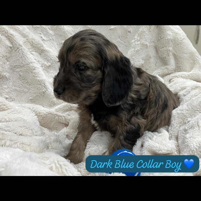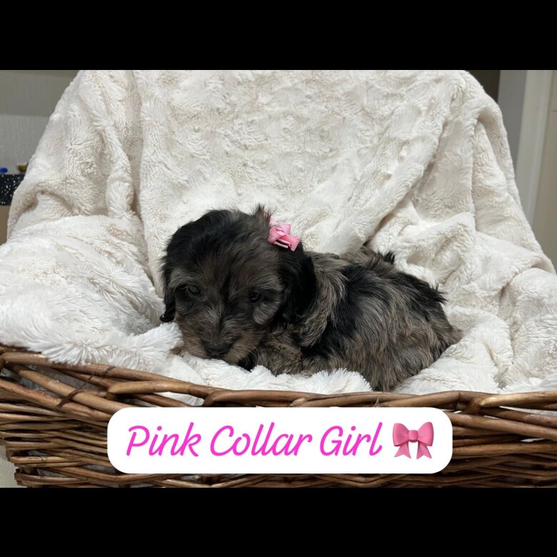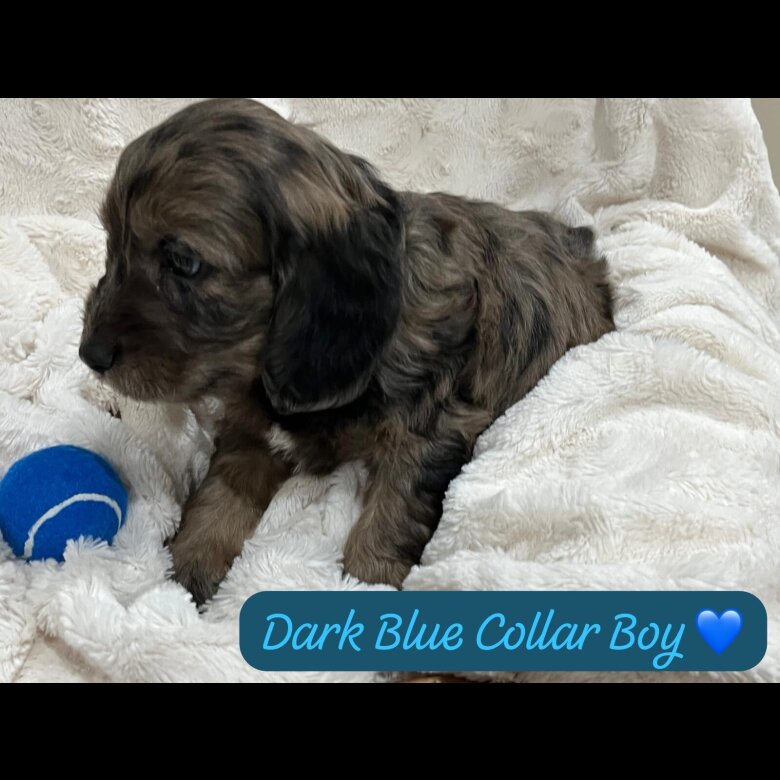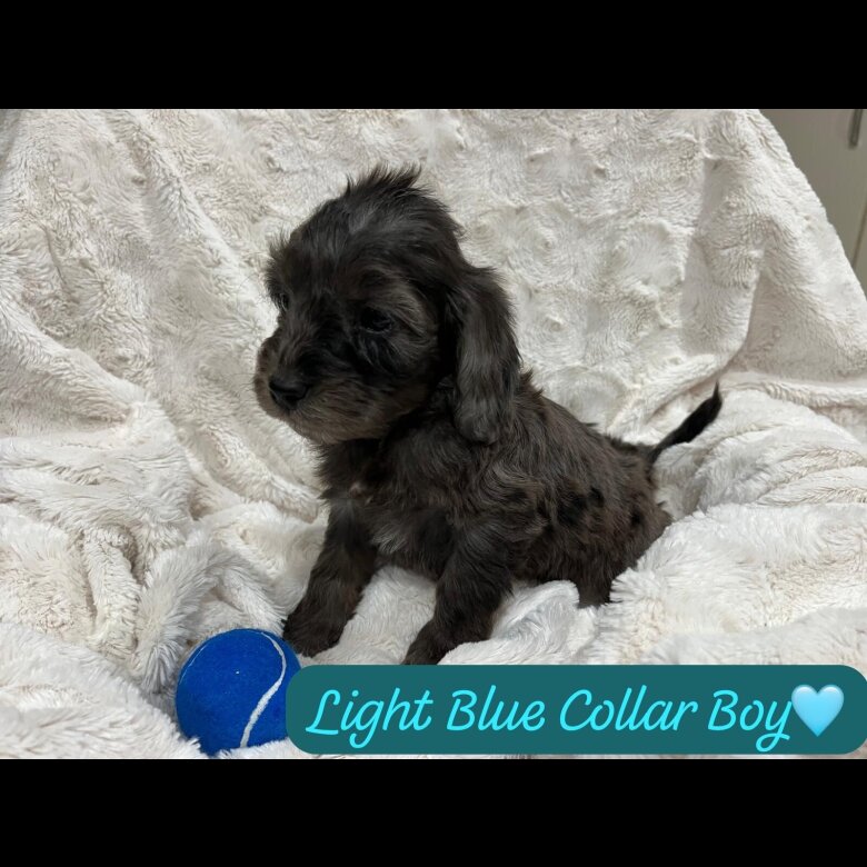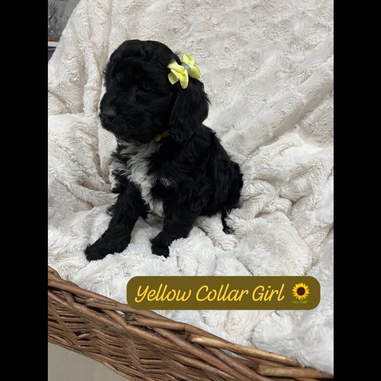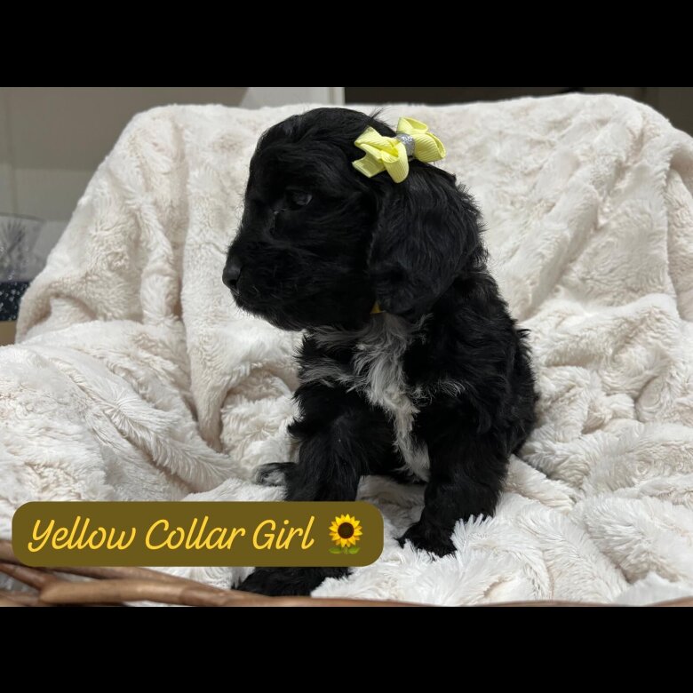 9 beautiful F1 Cockapoo puppies, 4 girls and 2 boys still available. Raised with a lot of care in the heart of our family home, these pups are looking for loving families to grow up with. Mum is our cherished red show type cocker spaniel. She's had no past problems or health issues and has a lovely temperament. Dad was a very careful and deliberate choice - a handsome miniature poodle stud with the most bouncy, affectionate and sweet personality. He has been well health tested, proving what a strong and healthy boy he is. From the moment the pups arrived, they have been surrounded by the beautiful chaos of family life. They are growing up confident, curious, and well-socialised, and are already enjoying being held. PURPLE Collar Girl - Blue Merle AVAILABLE PINK Collar Girl - Blue Merle AVAILABLE CERISE PINK Collar Girl - Black + white markings AVAILABLE YELLOW Collar - Black + white markings AVAILABLE DARK BLUE Collar Boy - Blue/Chocolate Merl AVAILABLE RED Collar Boy - Apricot AVAILABLE Our lovely puppies will be: - Wormed up to date with panacur - Will have had their 1st vaccinations - Vet health checked - Flea treated at 8 weeks Every pup will be sent home with a going home bag that includes a vet card, puppy biscuits, puppy pads, a blanket carrying the scent of mum. A £200 non refundable deposit is required to secure a puppy of your choice. From this point forwards, we will make sure to give you regular updates and photos to keep you in the loop. Pups will be ready to leave for the new homes on the 27th of April. Face to face viewings are warmly welcomed for you to meet the pups. Please send us a message to enquire about one of our pups - no question is too big or too small!