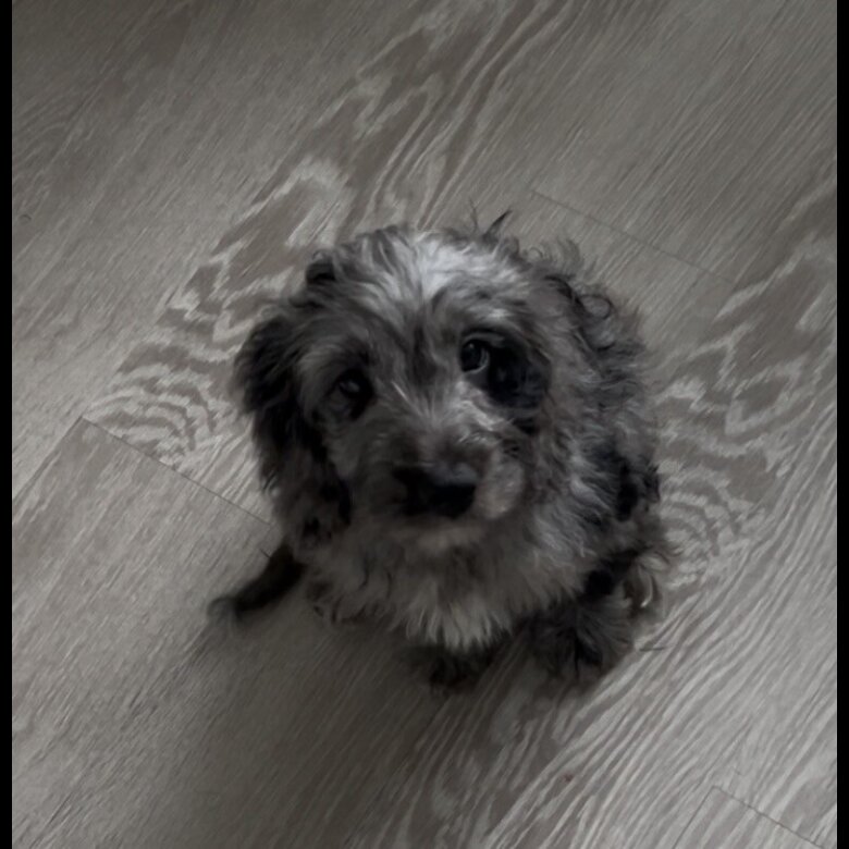 Dad is a stud dog, he is a miniature poodle. He’s blue merle in colour and has a lovely temperament.