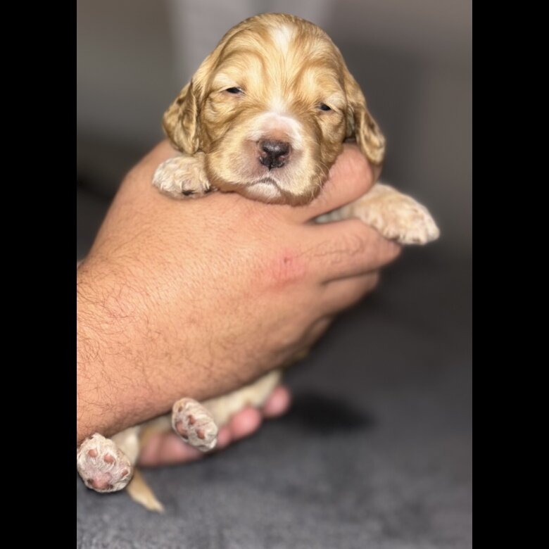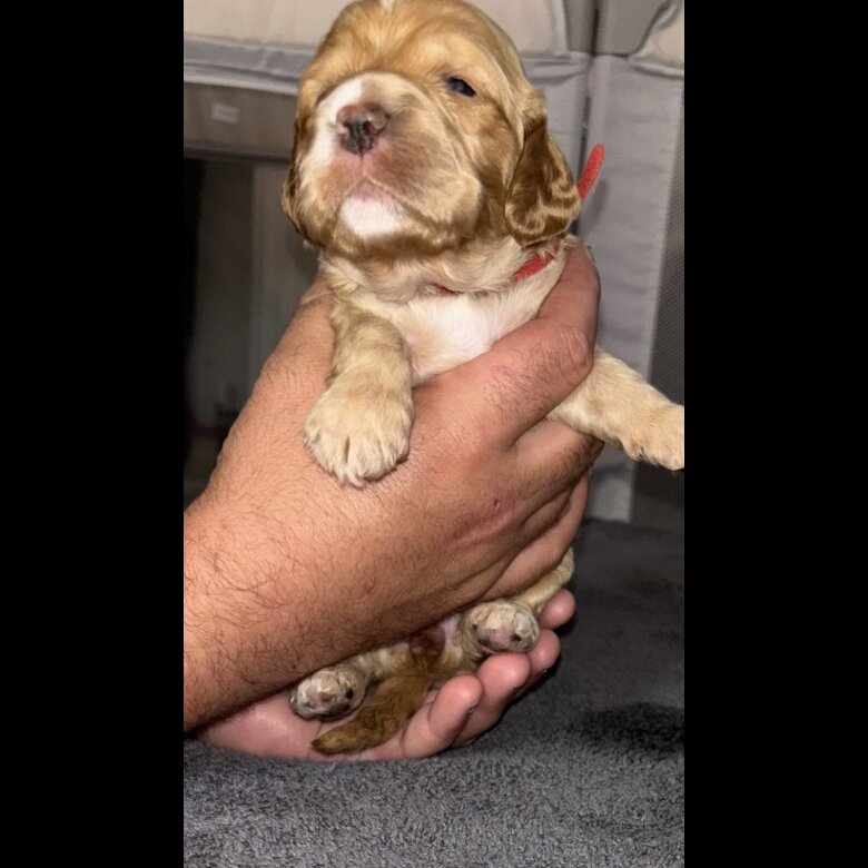 Dad Jasper is also our family pet who is very much like a baby him self wanting all the attention snuggles cuddles and loves he is a show type cocker spaniel very intelligent breed he's also been brought up round our children