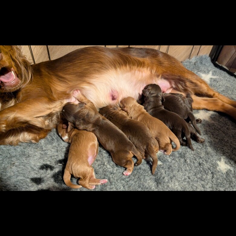 We are proud to announce our beautiful girl had a healthy litter of 6 !🧬DNA Clear and Healthy Available Puppies Stunning Working Cocker Spaniel Puppies.