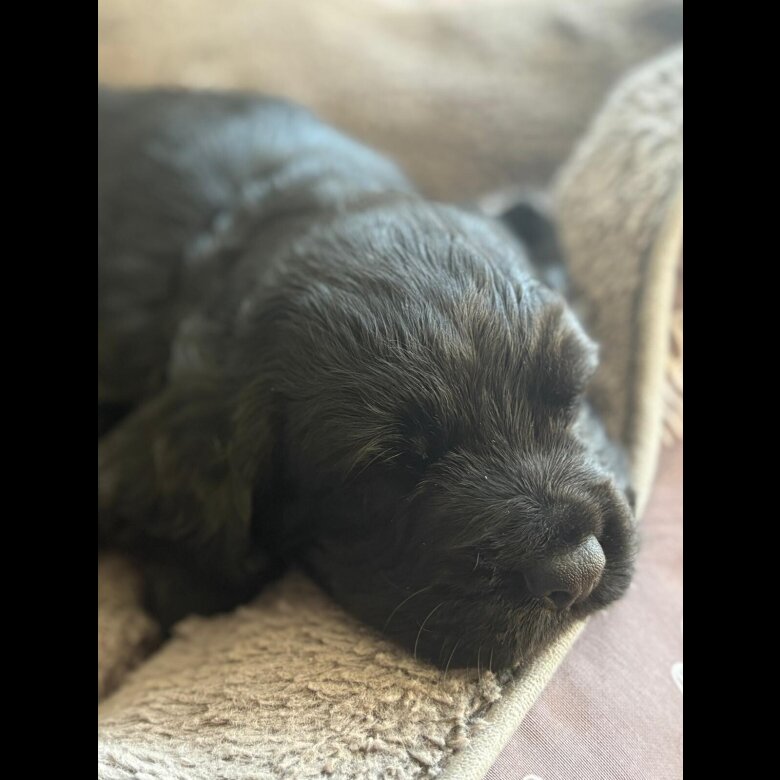 6 week old beautiful black cocker spainel boy available mid February.
