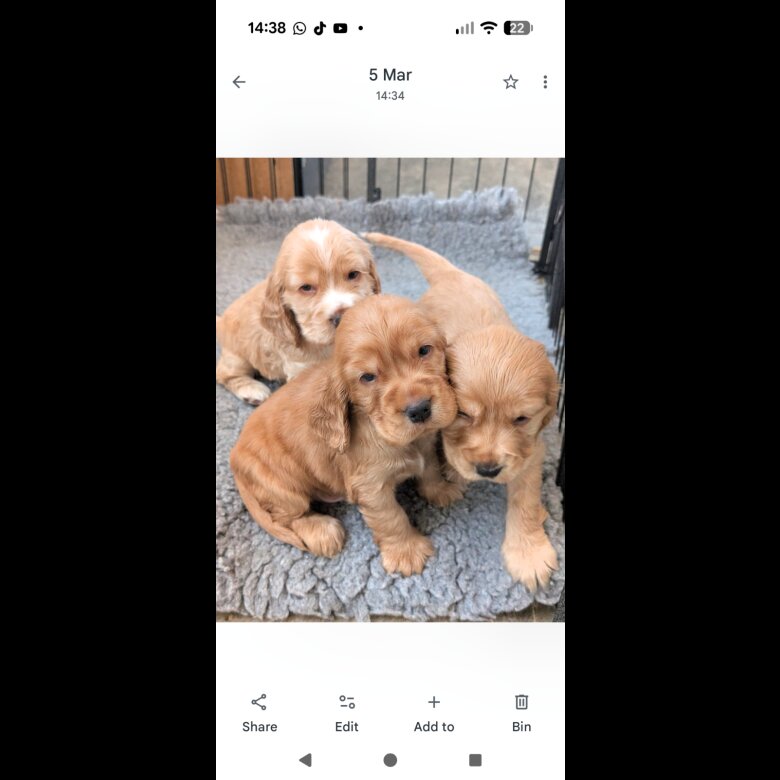Super stunning show type cocker spaniel puppies. Home reared, KC Registered, wormed, flea treated, microchipped, well socialised, DNA tested parent.