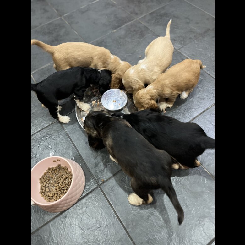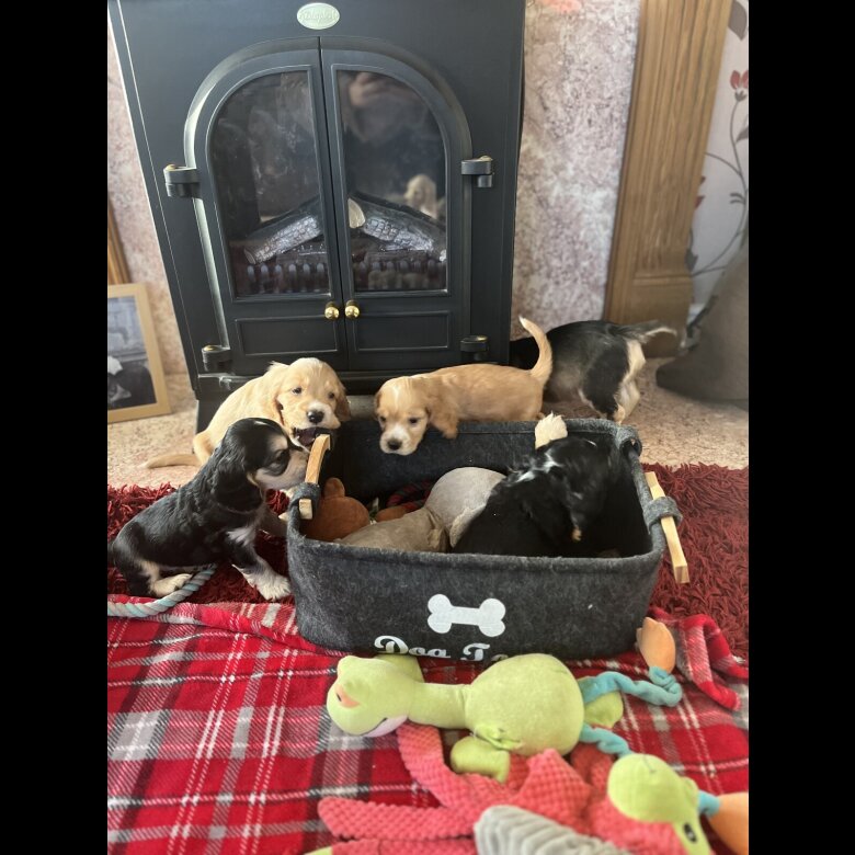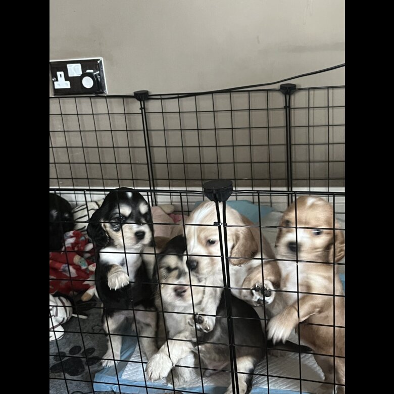 My beautiful girl Bella gave birth to 6 beautiful puppies ,mum and dad are both kc registered mum can be seen with pups, brought up in a loving family home been handled daily ,great with children and other dogs waiting for there loving new homes ,genuine interest only deposit holds pup they will leave with current food and a blanket with mums scent to help them settle in pups will be kc registered ,had 1st vaccination and **** are very well socialised and currently being pad trained .