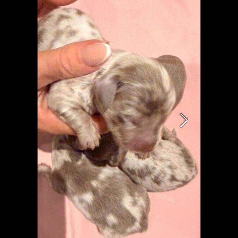 • The Girl: An incredible Isabella/Silver Dapple with a uniquely light base coat. Truly a one-of-a-kind pup. — £1,800