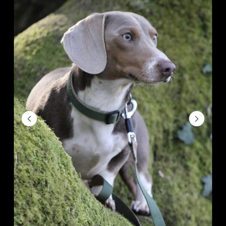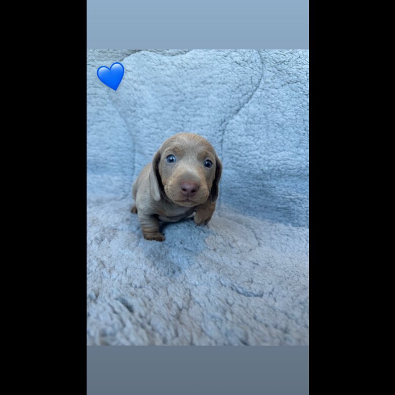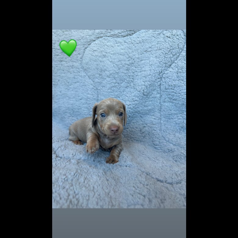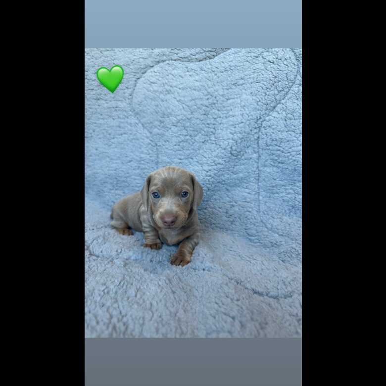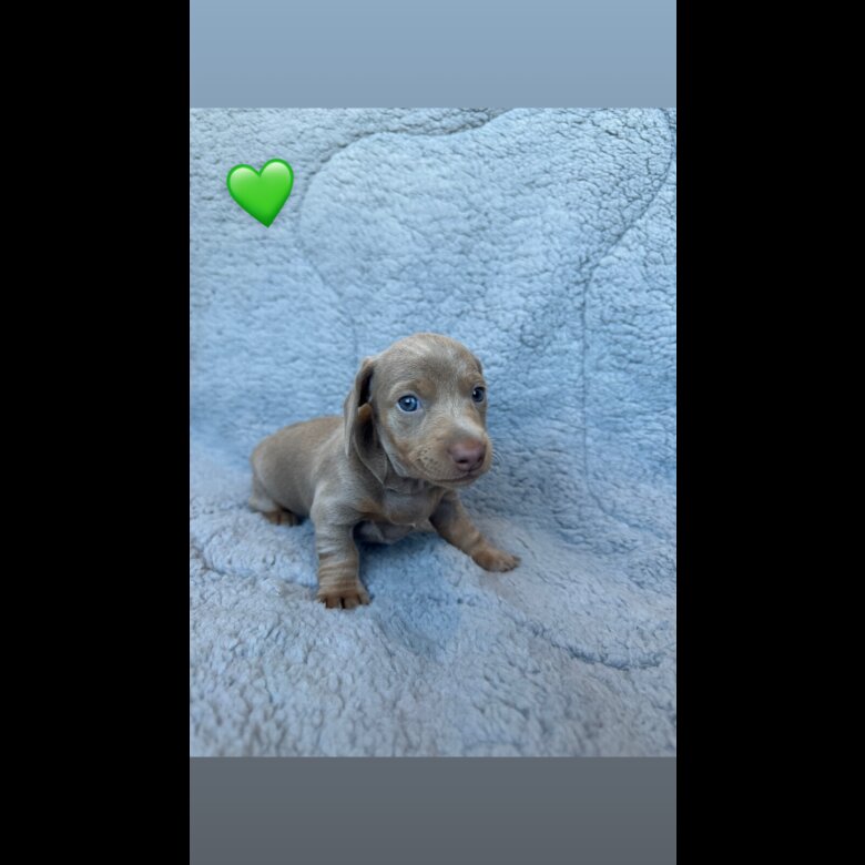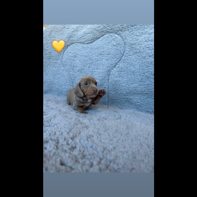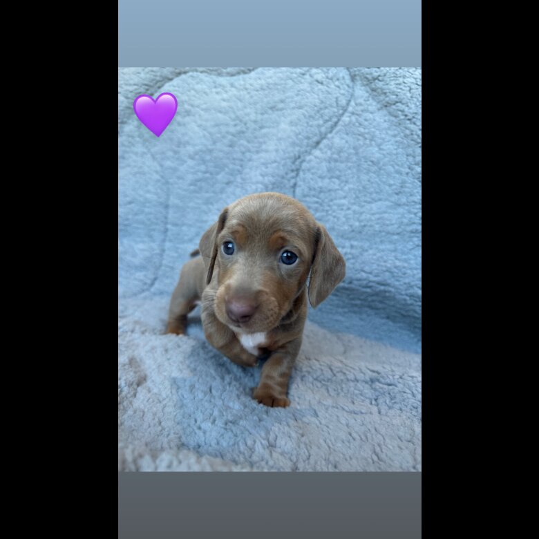 Dad, Toby, is a KC registered Isabella Piebald Miniature Dachshund.
