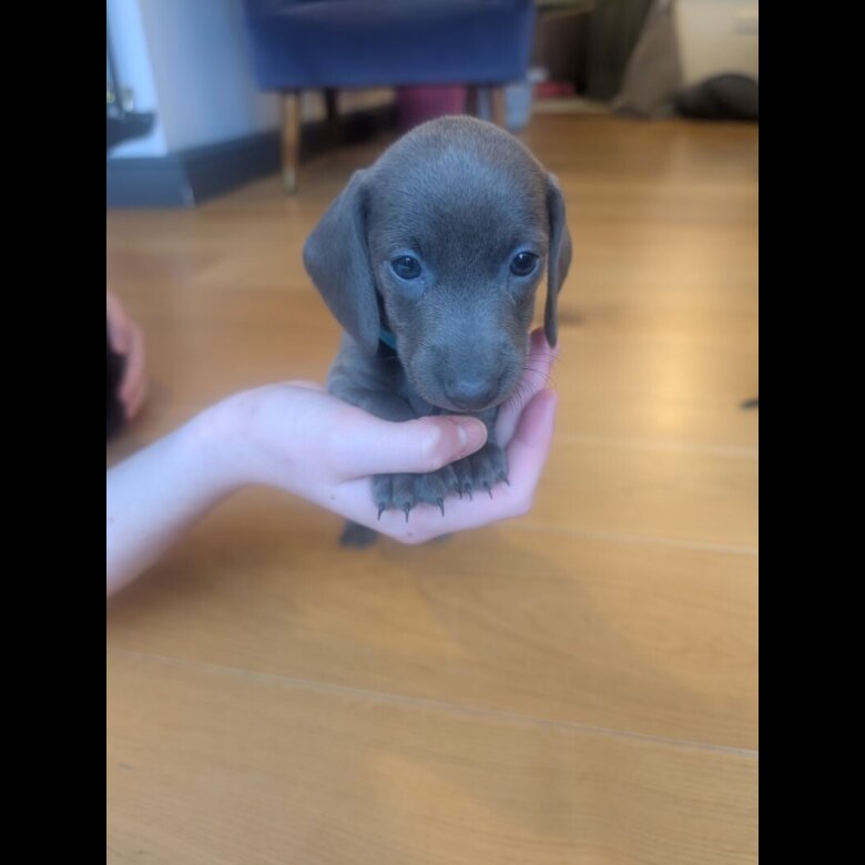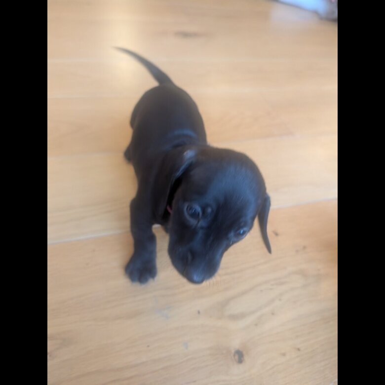 Their mum is gorgeous and loves people. She is desperate to be petted by anyone. Their dad is a short haired mini Daxie, and was small at ****, so these won't be big doggies