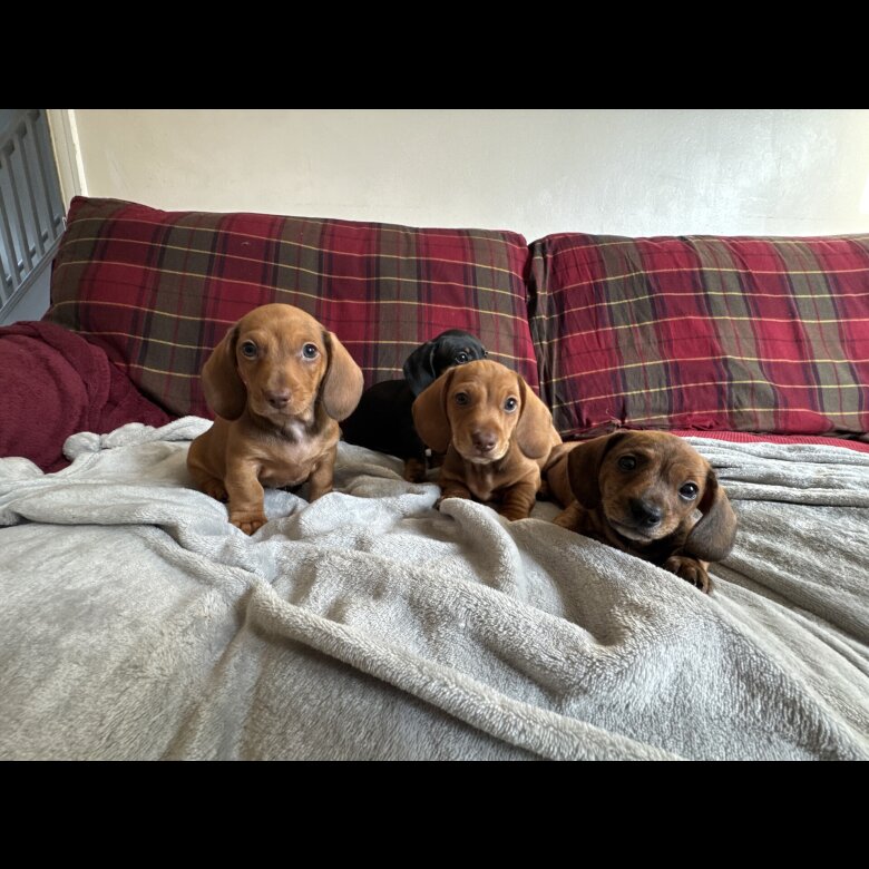 Miniature dachshund puppies 1 Black and Tan bitch 1 Black and Tan boy 1 red dapple boy 1 red boy Gorgeous little dogs ready for their new homes in 3 weeks time(pups born . Amazing around children as ****