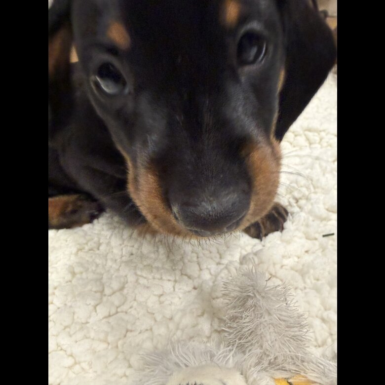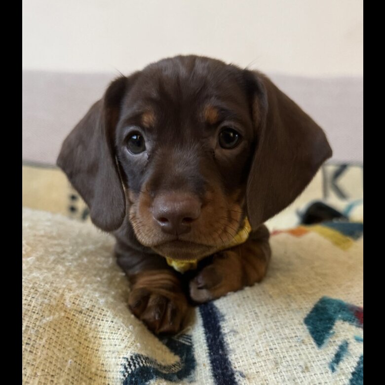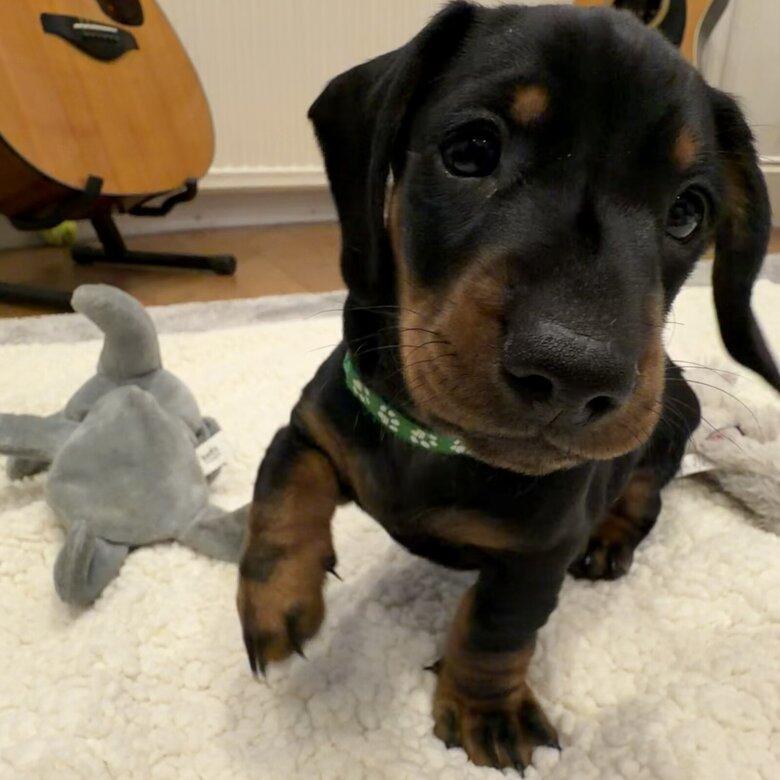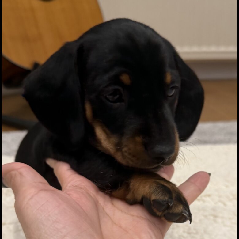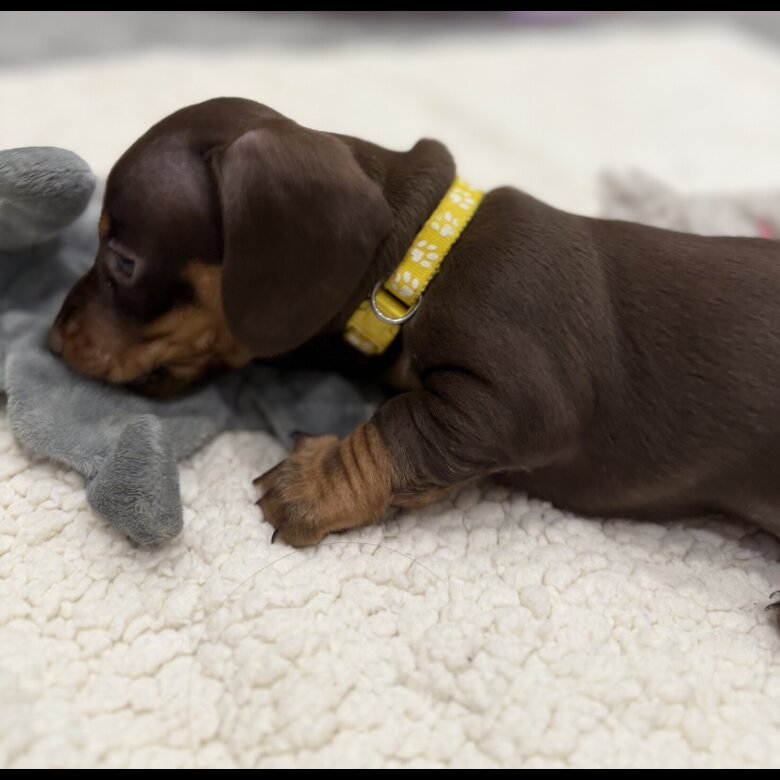 Mum is a KC registered, PRA clear standard smooth-haired Dachshund with a wonderful temperament and is an excellent, calm, and attentive mother.