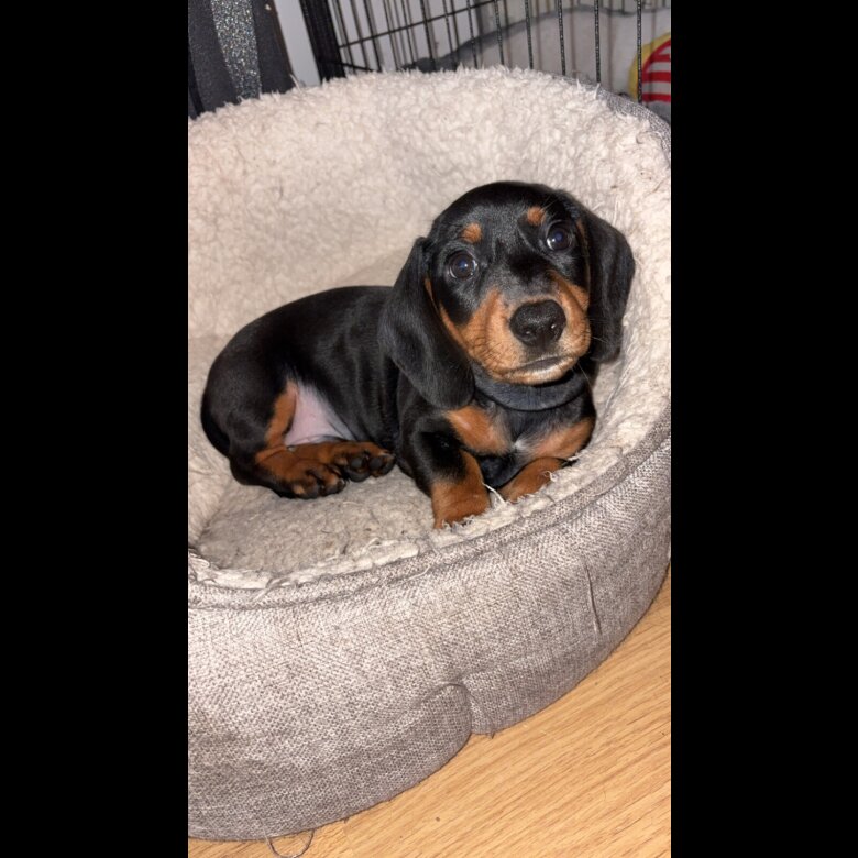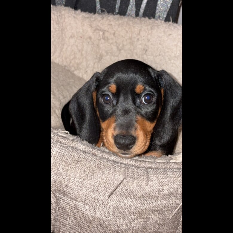 We are delighted to offer a stunning litter of six beautiful puppies, 1 boy left all Black and Tan available to loving and responsible homes. Dam (Mum): Black and Tan, PRA clear, and fully vet checked. She is our cherished family pet, raised in a warm household with children, ensuring the puppies are well socialised and confident. Sire (Dad): Blue and Tan Miniature, PRA clear, health checked, and KC registered. He comes from an outstanding pedigree, grandson of the well-known Romford Dark Prince and Charlie Chaplin. (Please note: Mum is also KC registered; however, her paperwork has been misplaced.) Puppies will be: Raised in a family home environment Accustomed to everyday household sounds Available to leave from 24th December 2025, just in time for Christmas Optionally vaccinated and microchipped prior to leaving (price adjusted accordingly) ✅ Both parents are PRA clear ✅ Health checked ✅ Viewings welcome ❌ No offers please – prices are fixed These puppies have been bred with excellent temperament and health in mind. Only serious enquiries from loving, permanent homes will be considered.