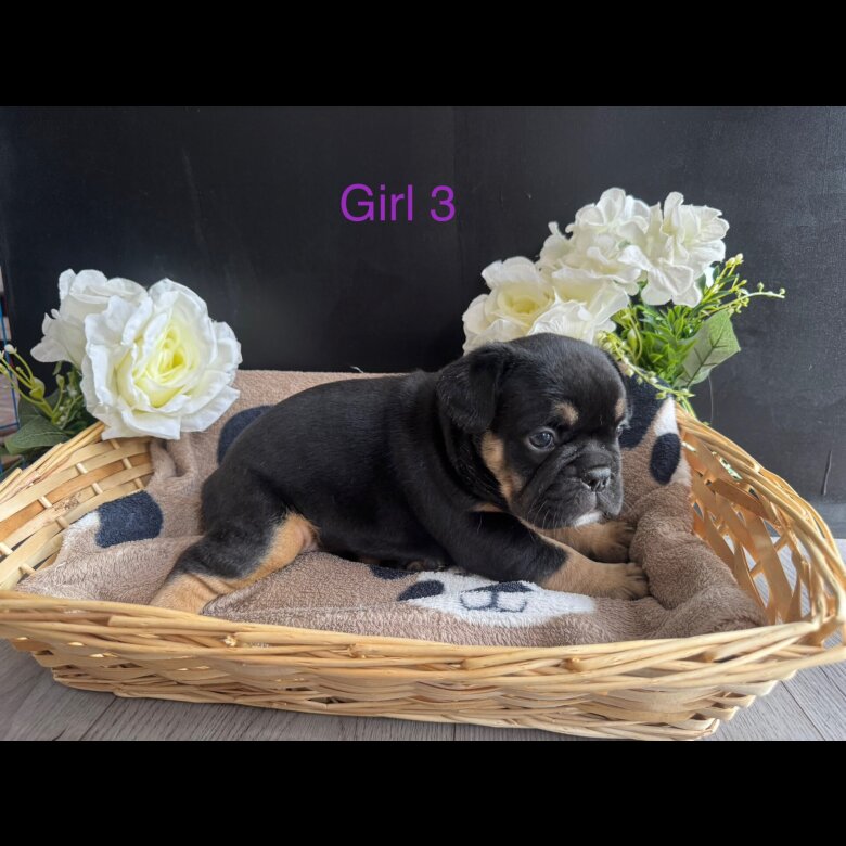 Here we have our beautiful litter of KC registered, English bulldog puppies. Grandfather is 2x NEBBR and ABKC champion. Both parents are very good pedigrees. Father is black brown and white, tri fluffy English bulldog so puppies will be fluffy carriers. All of our puppies are vet checked. All puppies are brought up in a family home, so are used to children other dogs and the general noise of a family home ie Hoovers etc. We have a beautiful selection of colours, black brown and white 2x Lilac ,brown and white Light lilac almost silver, brown and white Chocolate/black, brown and white Grey/blue, brown and white All of our puppies will come with a starter pack with the first food, little pack of toys, and a sent blanket . Also, they will come with a little folder, including birthweights , progression, weights to date, first collers and a couple of other sentimental bits. Puppies will be ready to leave on the 11th of September. Viewing welcome ,a nonrefundable deposit of £300 will secure your puppy until collection date agreed. Feel free to call me or message me