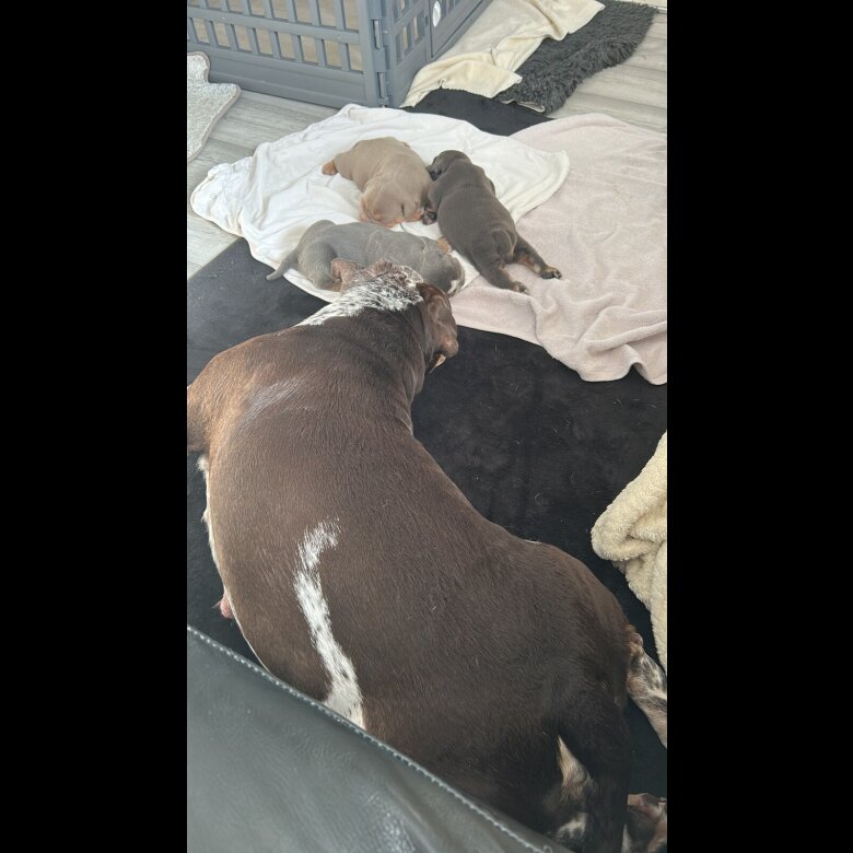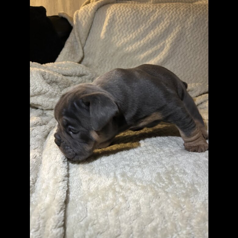 Beautiful Olde English bulldogs to find forever home my beautiful Stella gave birth to 3 stunning bulldogs 2 boys and 1 girl both boys have SOLD I have one BLUE and TAN girl left to find her loving home ready for Christmas all pups will be microchip on the 19 th of November and have a health check at the vet the same time all pups have been wormed every two week and regular weight checks all pups come with full NEBBR registration papers New England bull breed registry who will be the lucky person to snap this stunning blue girl up called Miss lightning ⚡️ full blood line of generation on there papers welcome to come and view /call /whatapp video happy to answer all questions x ready to leave end of November please NO TIME WASTING as I have already found home for the others