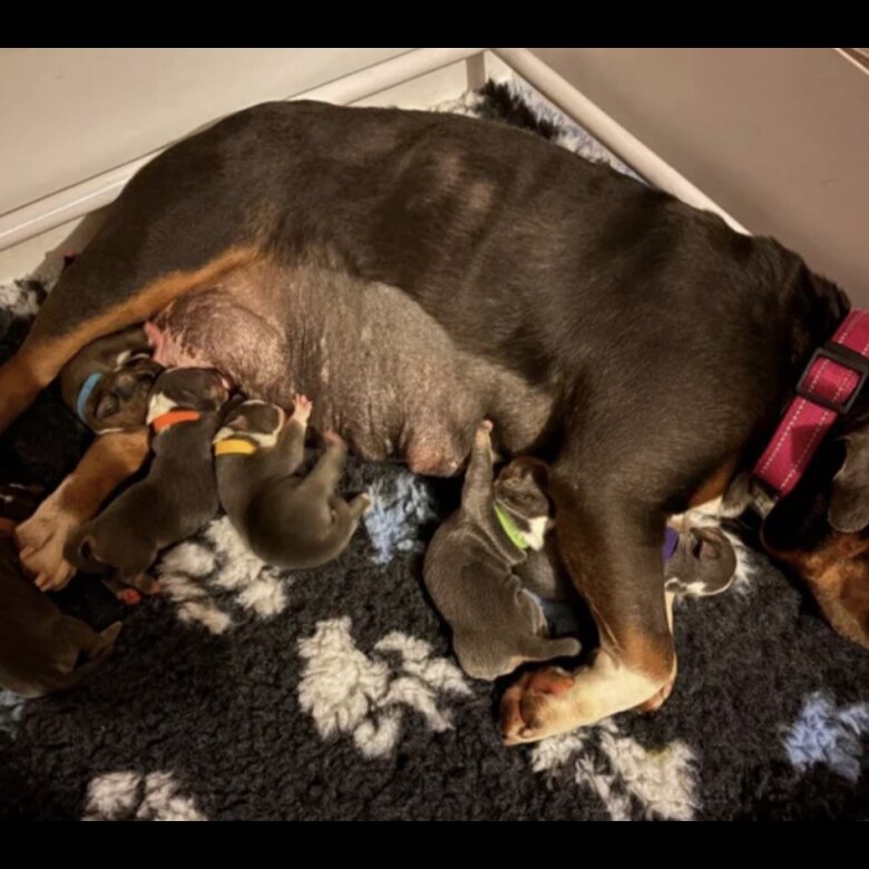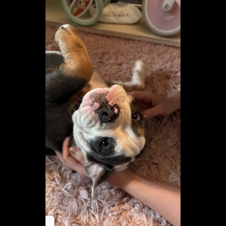 Star is a 10 month old 5th generation pedigree Olde English Bulldogge. We are her original breeders and had originally planned to keep her, which is why she wasn’t sold alongside her siblings. However, due to increasing care needs within our family, we are no longer able to give her the time and daily exercise she deserves. This decision has been incredibly difficult, and her wellbeing is our absolute priority.