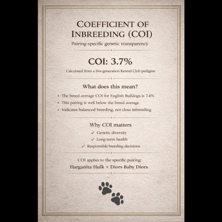 (COI) of just ****, reflecting responsible, considered breeding with health and longevity at its core.