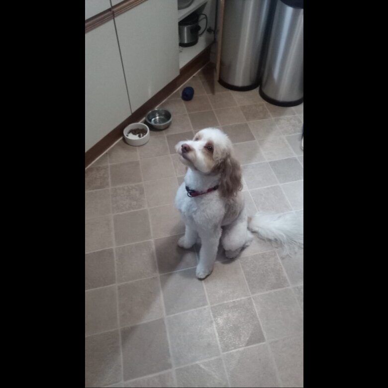 Dad is a gorgeous white and cream Cockapoo. He's got the most loving sweet nature. A true gentleman.