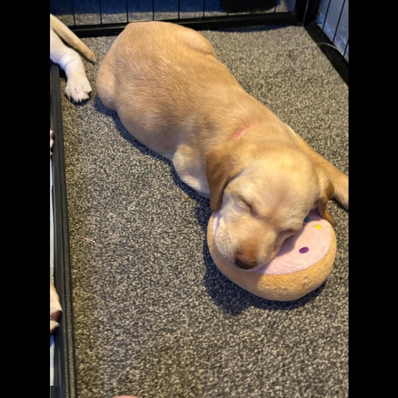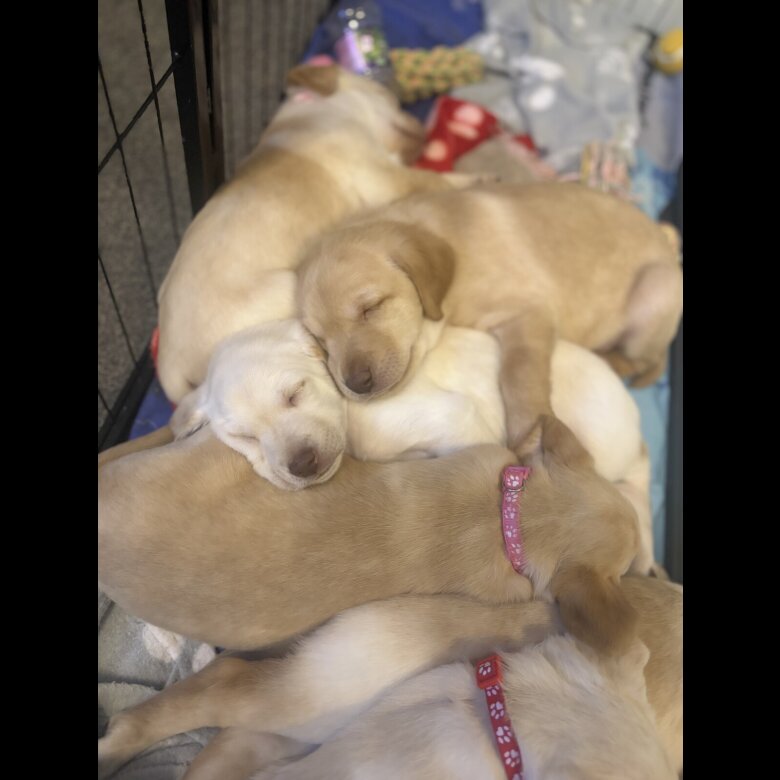 Mum is a ruby Labradoodle and dad is cream Labrador