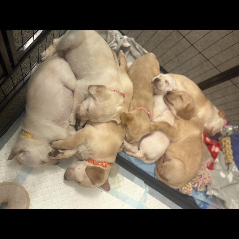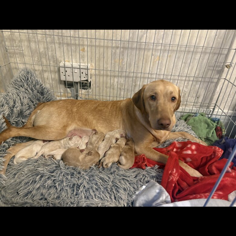 Here we have our surprise litter of 7 puppies (2 boys and 5 girls). Upon leaving they will have been flead and wormed and first injections and health checks, and come with puppy packs.