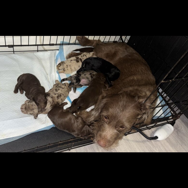 Mum is a gorgeous chocolate labradoodle weighing around 10kg. Dad is a blue merle miniature poodle stud dog weighing 8kg. Both parents have excellent personalities and temperaments.