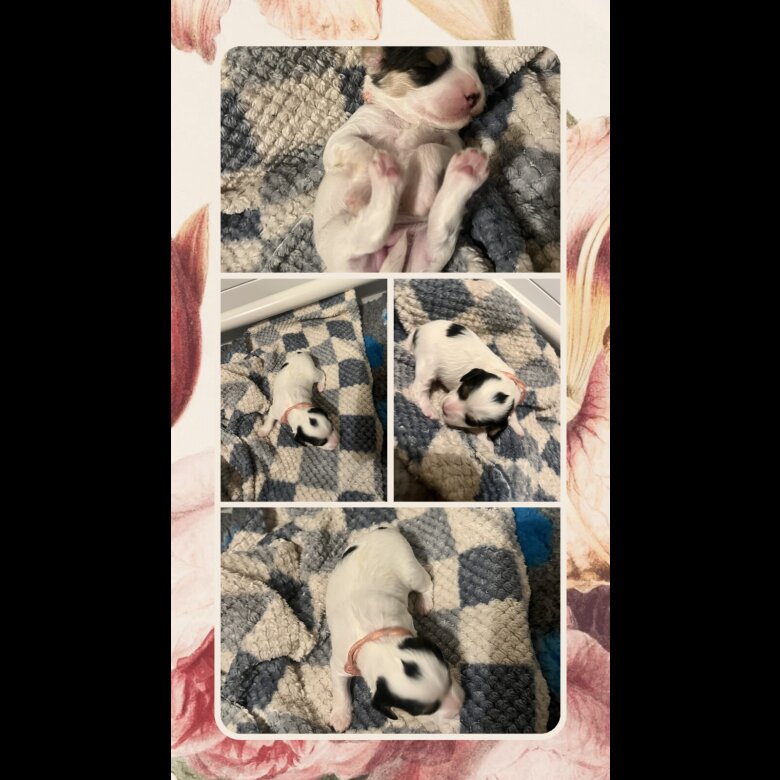 We expect the puppies to grow to a medium size similar to their father, reaching approximately 15–17 inches when fully grown and weighing around 10–13 kg