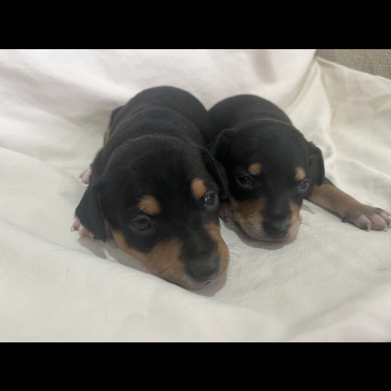 On the 14th of March we welcomed Five beautiful Miniature pinches mum done an excellent job for black in town and an extra special Red. Mum is a beautiful girl family pet this is her first letter and only also Dad is our family pet a beautiful guy happy playful healthy Boy these puppies will be brought up around children other pets also our cat they will come with there