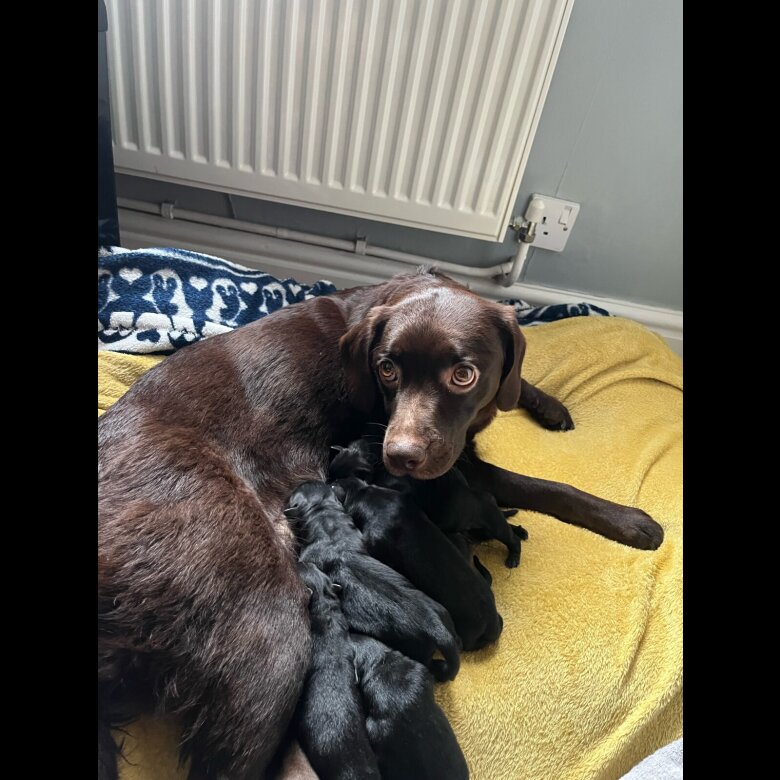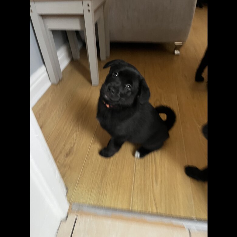 3 beautiful puppies left looking for a loving home. We have 2 females and 1 male ready to leave now. Colour is black / dark brown. Their Mother is a labradoodle and Father is a Siberian Husky. They are now very playful and love the attention. They enjoy playing with soft toys. They are now using puppy pads and are eating wet puppy food and soft puppy meat biscuits.