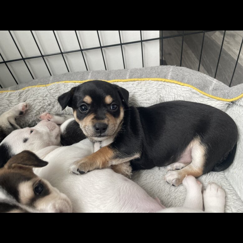 All puppies are perfectly healthy and thriving! They are fully weaned, doing well with potty training and will be ready to leave from 13th July (10 weeks old).