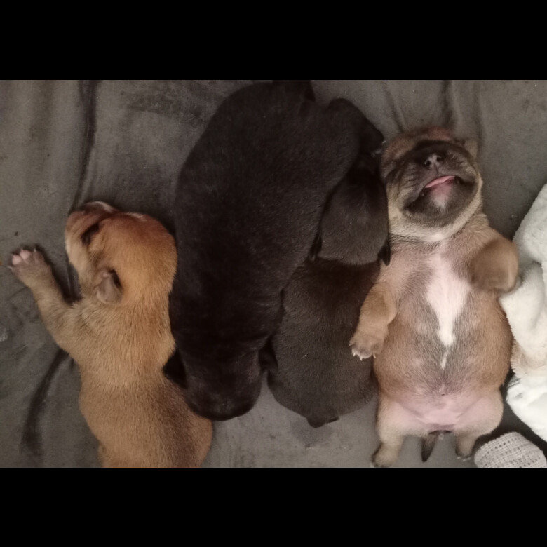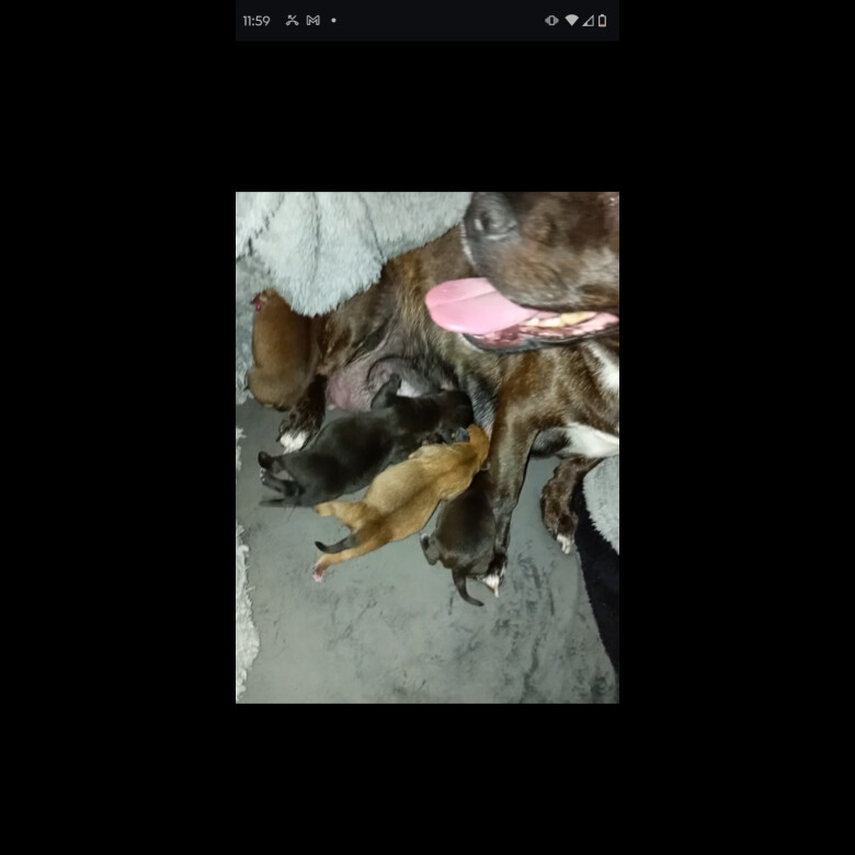 My beautiful staff cross chug gave birth to 4 beautiful puppies all different colours on 30th March