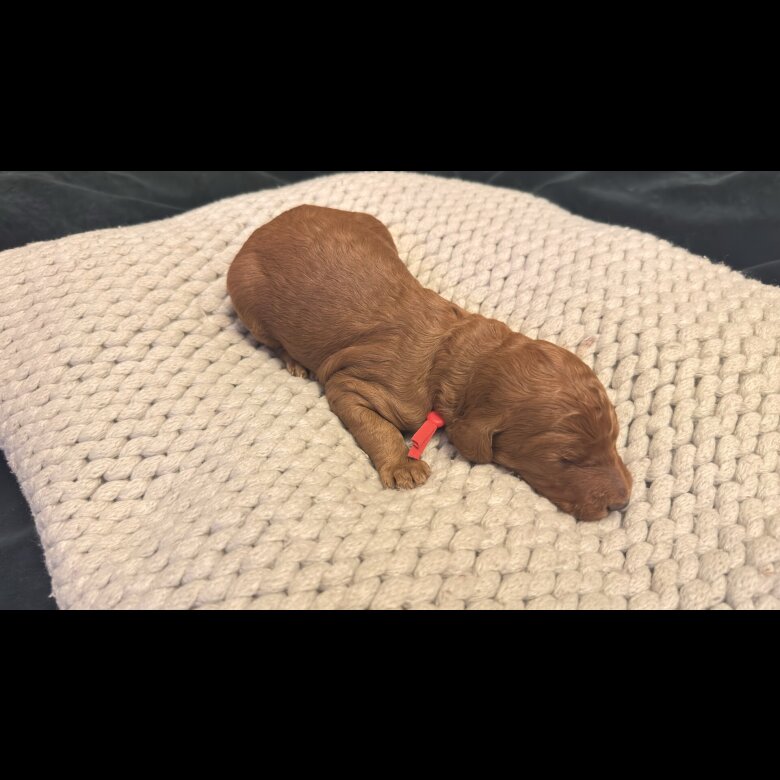 • One Golden Standout: A stunning, warm Apricot pup—a unique sunbeam in this fiery litter.
