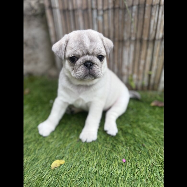 Our gorgeous girl pug “Daisy’ has had 4 beautifully rare coloured puppies that are ready to go on the 30th of October. All puppies will come vet checked with micro chip, flead, wormed and 1 month of free insurance via Vets4Pets. Puppies grandmother and mother are KC Registred but unfortunately we’re not registering this litter. I will post photos of each individual puppy for you to see so you can see how amazing their colours are, however the photos don’t really do these little babies justice, they are truly irresistible when you see them! They’re 8 weeks old and full of personality - playful, affectionate, and already showing those adorable pug expressions everyone falls in love with. Mum can be seen with the pups - shes our family pet and has the sweetest nature, They have been raised in a loving family home- used to household noise, busy environments , and around small children. We used a well known stud called “Dud The Stud” who carries beautiful unique colours, hence these puppies colours are extremely rare and look gorgeous! All puppies are ready to go and you are welcome to come and see them at our home anytime! We’re very particular about who these puppies go to and we want all of them to go to someone who will take great care of them and love them as much as we do! Remember puppies are for life, not just for Christmas!