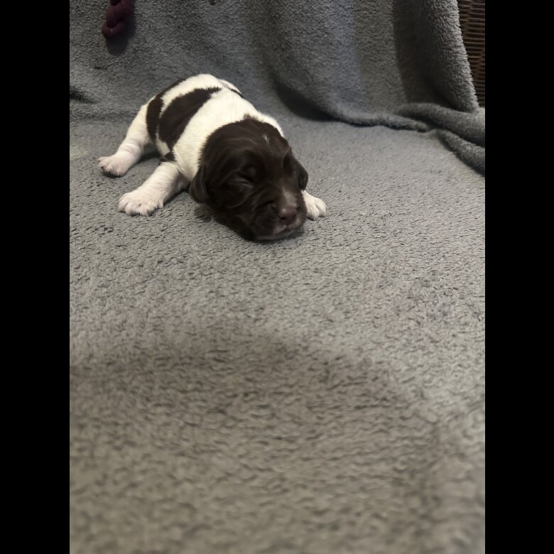 Sprockerdor puppies available as of 03/01/2026. 4 dogs and 2 bitches left, mixture of chocolate, black & brown and **** be microchipped, flea’d and wormed on leaving. Bred from our own family dogs, both are also gun dogs, mum is the black and white springerdor and dad is the golden cocker in the pictures. We have had a previous litter of full siblings who are all a year old and wonderful dogs. More pictures/videos will be available on request