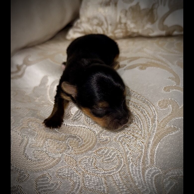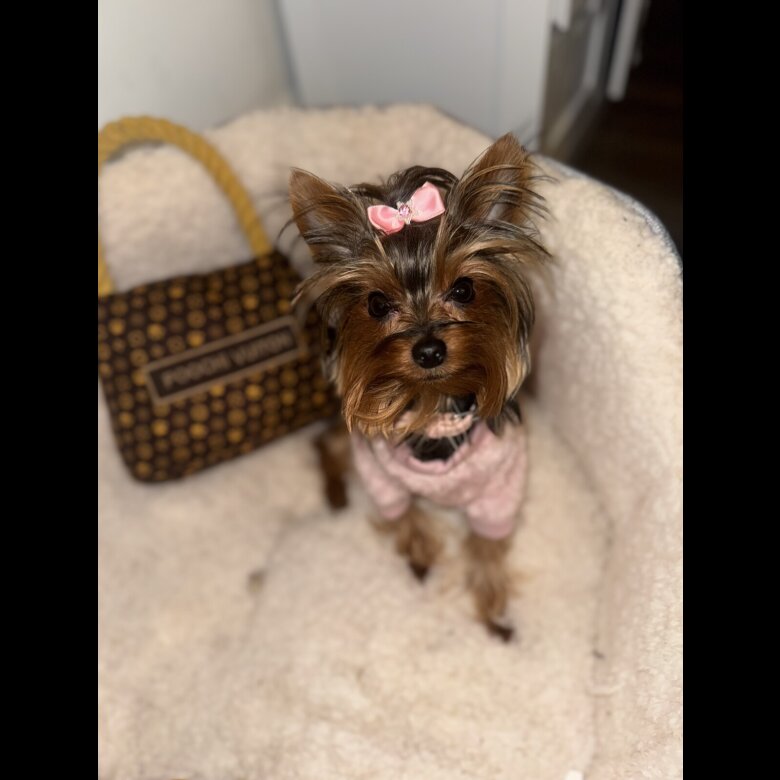 Dad is a gorgeous **** miniature Yorkshire Terrier – full of life, playful, and obsessed with chasing his ball 🎾🐶