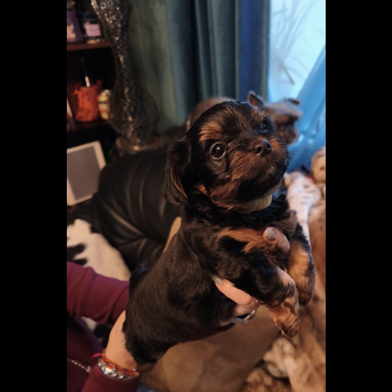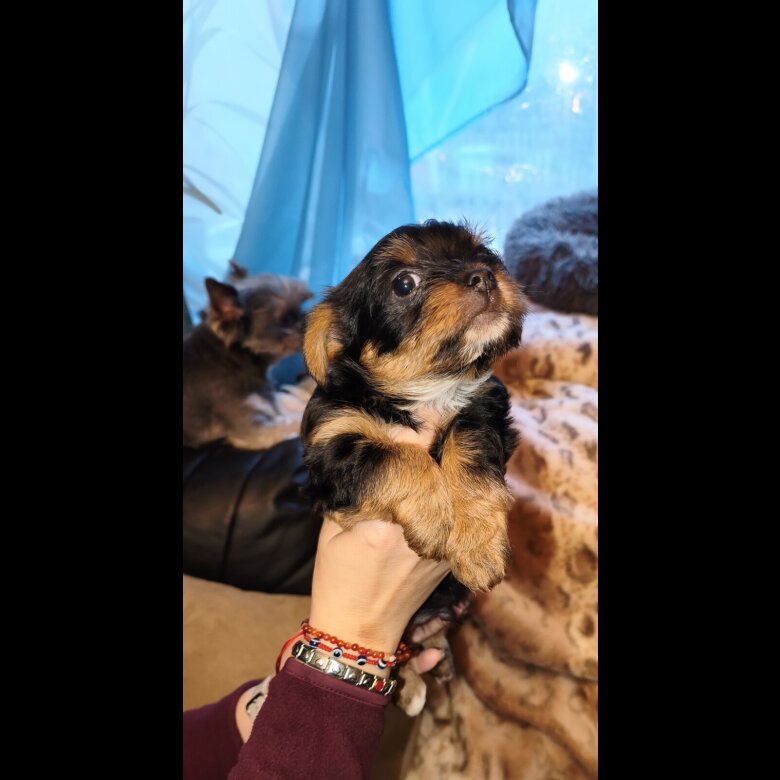 Both parents are family pets and can be seen. The mother is a standard Yorkshire Terrier, black and tan in colour, weighing 4 kg. The father is a mini Biewer Yorkshire Terrier with a beautiful salt-and-pepper coat.