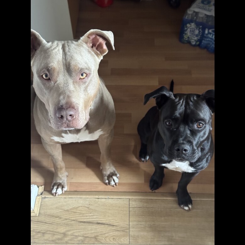 Hi. Puppies aren’t born yet just catching orders before they will. Momma is pregnant so it won’t be long. Beautiful dogs with character great unique shapes both of them father and mother. That’s gonna be beautiful smart and very dominant dogs. Only for responsible parents! They have great attitude specially boy she’s little bit overhyped but it’s because of her young age. Mother is very territorial giving a signals of strangers outside coming.she’s giving loud bark great protective dogs and at the same time very friendly for people always happy loves cuddles and hugs. Best dogs I ever have in my life gonna soon gives a babies. Put yourself on awaiting list. Greatings