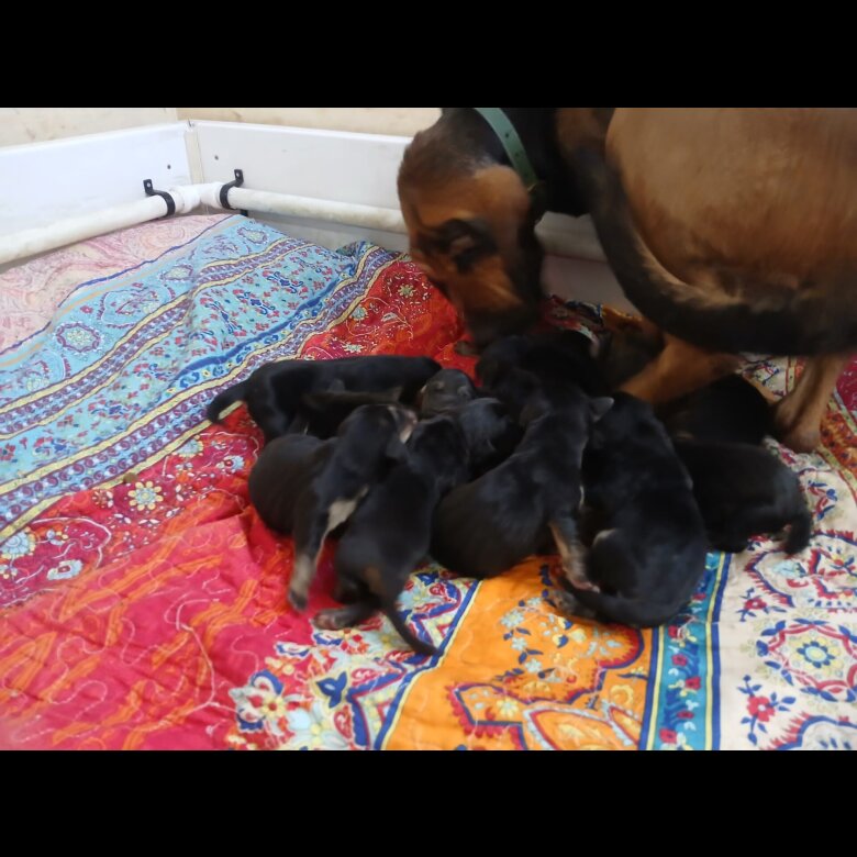 We have a beautiful litter of Bloodhounds. Mum is a pet and dad is a working bloodhound. They are both from Working stock. Mum and puppies can be seen together. You are welcome to come and see them. We also have grandmother and sister of mum for you to view. They have been well handled and have been brought up around kids and other dogs. We also have building work going on so are use to loud noises. Our pets spend most of their time sleeping on the sofa, but they do also like a good run around each day. They love to be around people.
