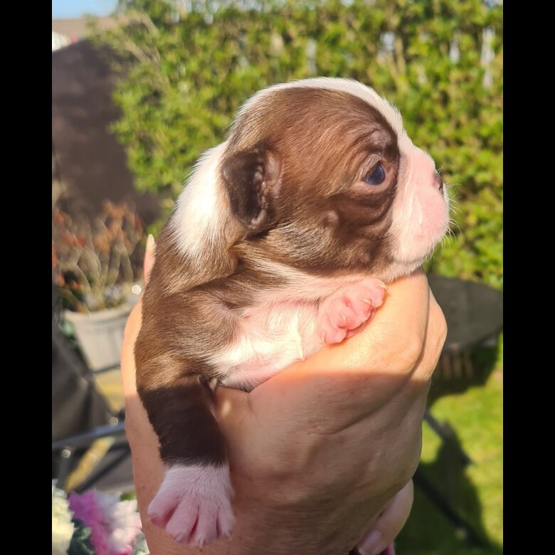 Beautiful mixed colours of Bostons brought up in the family home with our other family pets all nice markings, exceptionly loving natured parents ,pups will be microchipped, vaccinated, wormed and weaned ready to go with a puppy starter pack to their forever homes