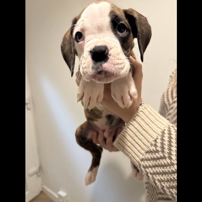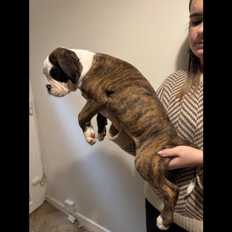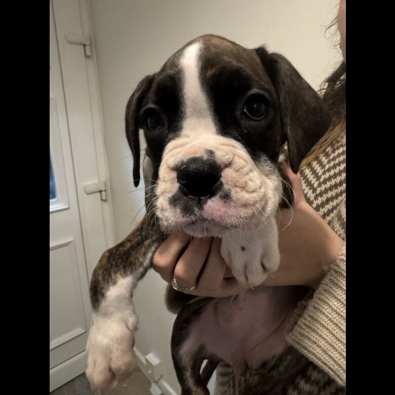 Raised in our family home in Norwich, these pups are confident, playful, and full of classic Boxer personality.