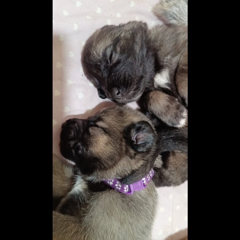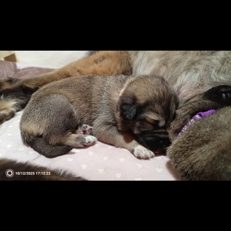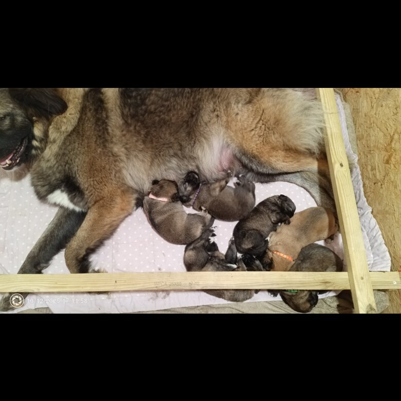 My girl had just had 6 gorgeous pups. All doing well and looked after by a very protective first time mum. The Dad of the pups is more than likely my German Shepherd x St. Bernard. But the dad could be my full Caucasian Shepherd, but the pups havent got his markings (yet). ***Update 8th Oct. First pups (big light coloured male orange collar) eyes have opened, with 2 others nearly there.*** ***12th Oct all the pups eyes are open and their all waddling around. Putting on weight, growing well and coats are getting thicker*** ***Update 13th Oct. Pups now come to say hello. Their coming on nicely and starting to develop personalities *** ***Hopefully viewing of the Pups can start this weekend, 18th Oct. as they are all developing really well*** The Mum is typical of the the breed very protective, great guard dog and weary of everyone. The Dad is a very intelligent and agile lad. 2 things which the Caucasians dont score high in. Also a great guard dog. To be fair I was looking for a Caucasian x German shepherd when i found their Dad. These will be fantastic dogs with great guarding instincts along with the brains. I would love to keep a few of then but I have 4 dogs, 3 full Caucasians. After a week they have grown and are getting chunky with big great shaped heads. There going to be a handful when their eyes open and start causing havoc. The Pups were born 27th Sept, available to view in a few weeks. But please get in touch if your interested.