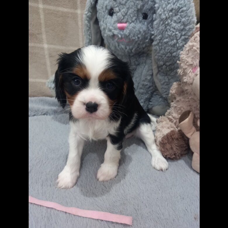 I welcome you very warmly. I am looking for loving homes for 6 puppies, 3 females, all Tricolor (orange, pink and red collar) and 3 males, 1 tricolor (green collar) and 2 Blenheims (gray and black collar). Puppies well looked after by their mother and us. Mom is 3 years old, dad is 5 years old and these are our dogs. Parents registered in the Kennel Club. The puppies will be microchipped and vaccinated for the first time, the second vaccination for the new owner. Puppies dewormed every 2 weeks. Dogs active and running around. They have plenty of space to play because their sleeping area is in the living room. They have access to the kitchen connected to the dining room, so the puppies are not kept in a cage. Accustomed to noises (TV, vacuum cleaner, washing machine). At 4 weeks old I took all the puppies to the vet. No puppy has any defects. **** :23/02/2026. Vaccination will be on April 21, 2026, puppies will be available for collection from April 26, 2026. I live in N14 and if you can't get to me, I can deliver the dog. I can take several dogs to your place, so you can choose the one you like the most. If you are interested in expanding your family with a charming and energetic daughter or son, please call us. Price - male: £1200, female: £1500. Puppies of this breed are in demand, so don't wait before someone overtakes you and takes your little one away. I am a professional driver, so if I don't answer, please text or WhatsApp. Regards