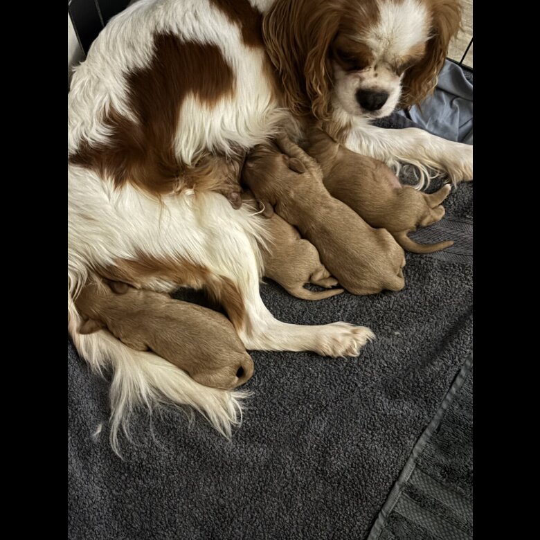 3 available . Beautiful home raised puppies ready to leave now. .3 boys 2 girls . Brought up in the home around toddler grandchildren all household noises etc. mum is blenhiem dad solid ruby. Pups are vet checked , wormed and microchipped. We can deliver once paid for. Will come with food and puppy blanket /toy. will come with 5 weeks free insurance
