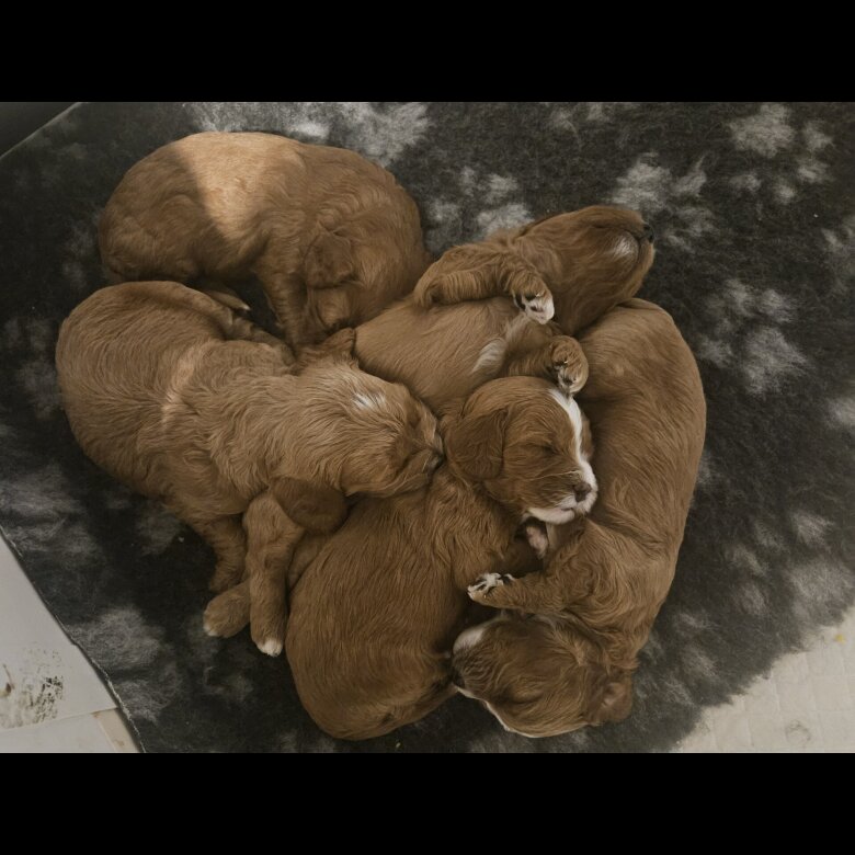 Three boys, Two girls. Dad is Health Tested, DNA Tested KC Reg Toy Poodle. All puppies are being raised in my hygienically clean family home. All will be health checked, fully wormed, microchipped and first vaccine before leaving at eight weeks old.