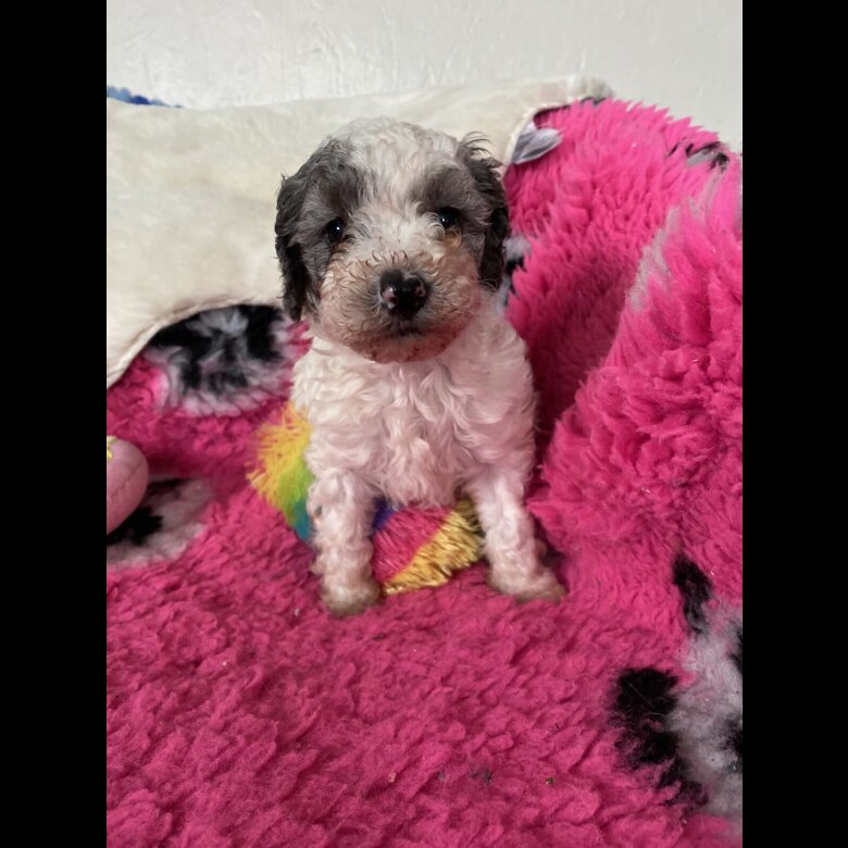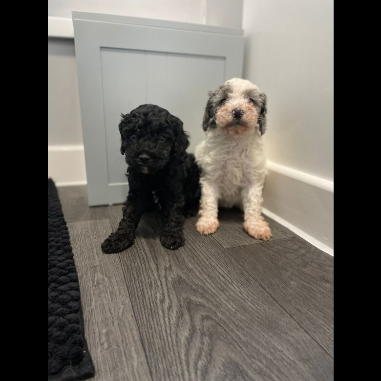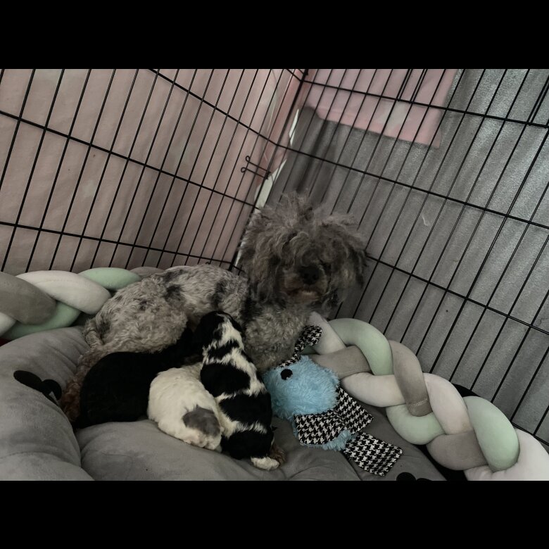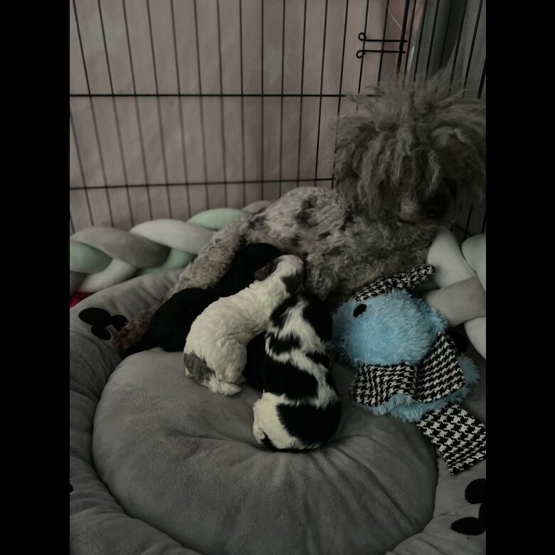 Unexpected but stunning litter of f1bb Cavapoo pups 2 girls and 2 boys. Available born 19th December 2024 so not ready until around Valentine's Day when they are 8 weeks. Mum is my pretty Merle girl and dad is my daughter's parti miniature poodle.
