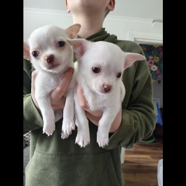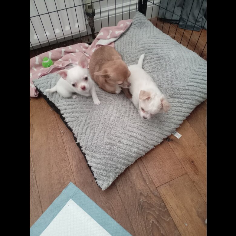 Two beautiful chihuahua pups 7 weeks old cream and fawn short coat ready in 3 weeks will be vaccinated microchipped wormed come with puppy pack blanket with mother's scent deposit required to secure puppy