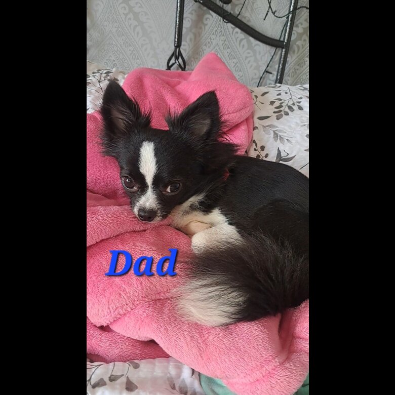 Dad is black and white long coat chihuahua