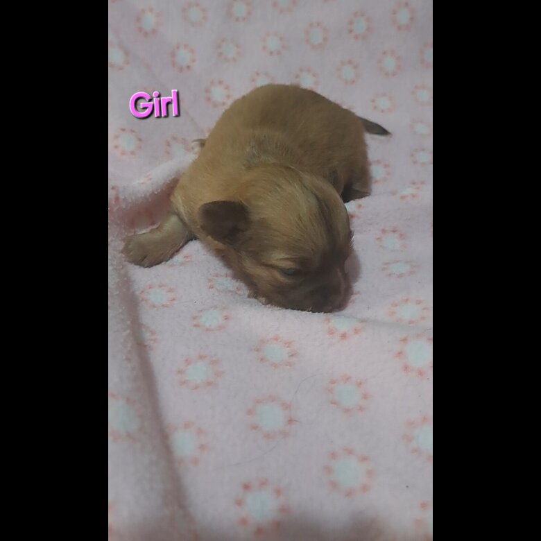 Mum is apricot and white long coat chihuahua