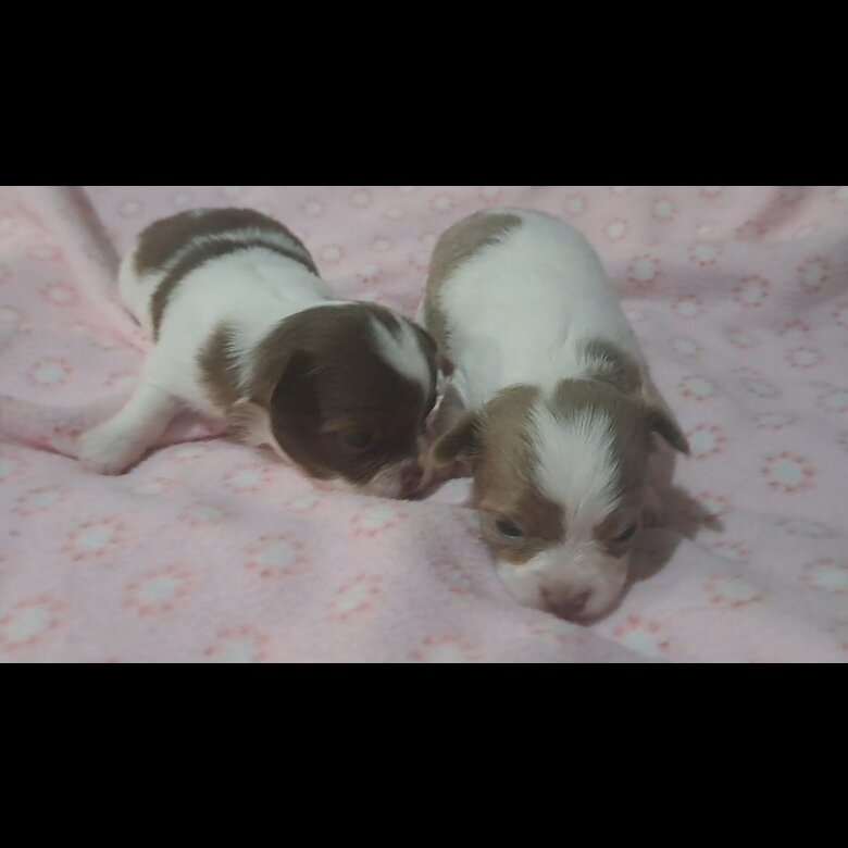 Mum and Dad are both family pets and can be seen with the puppies. Apple head, long coat chihuahuas.